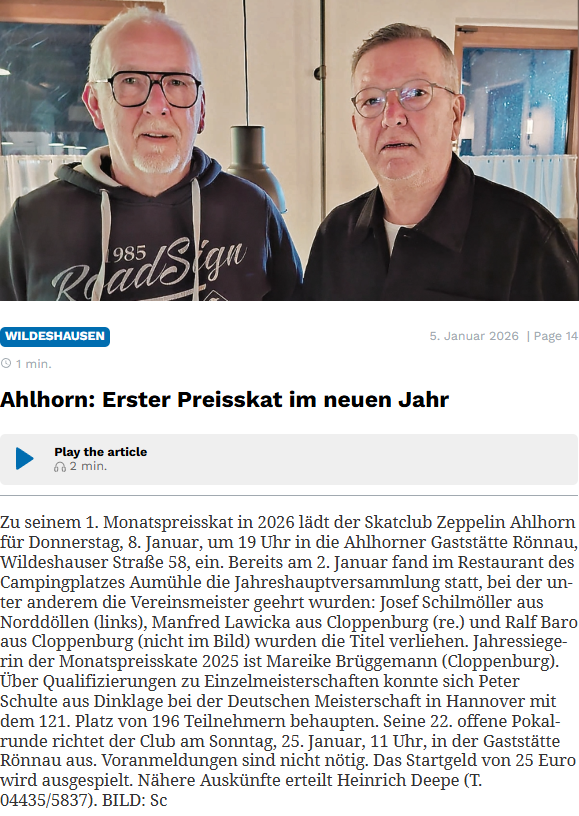 Preisskat mit Jahreswertung